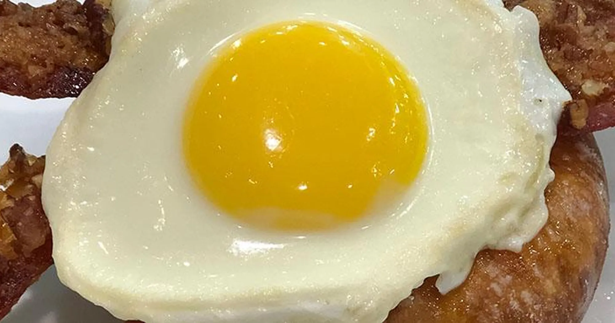 StackingPlace donut on your plate. Top with 3 slices of bacon then add then egg on top of the bacon. Now it’s ready to serve!