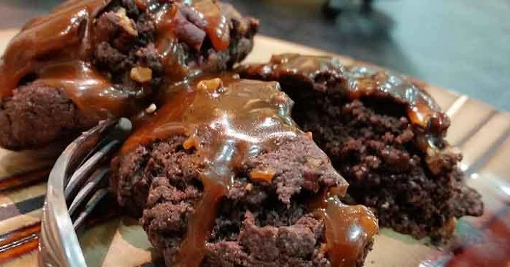 Remove to wire rack from oven and apply salted caramel while still warm. Allow to cool five minutes before serving.