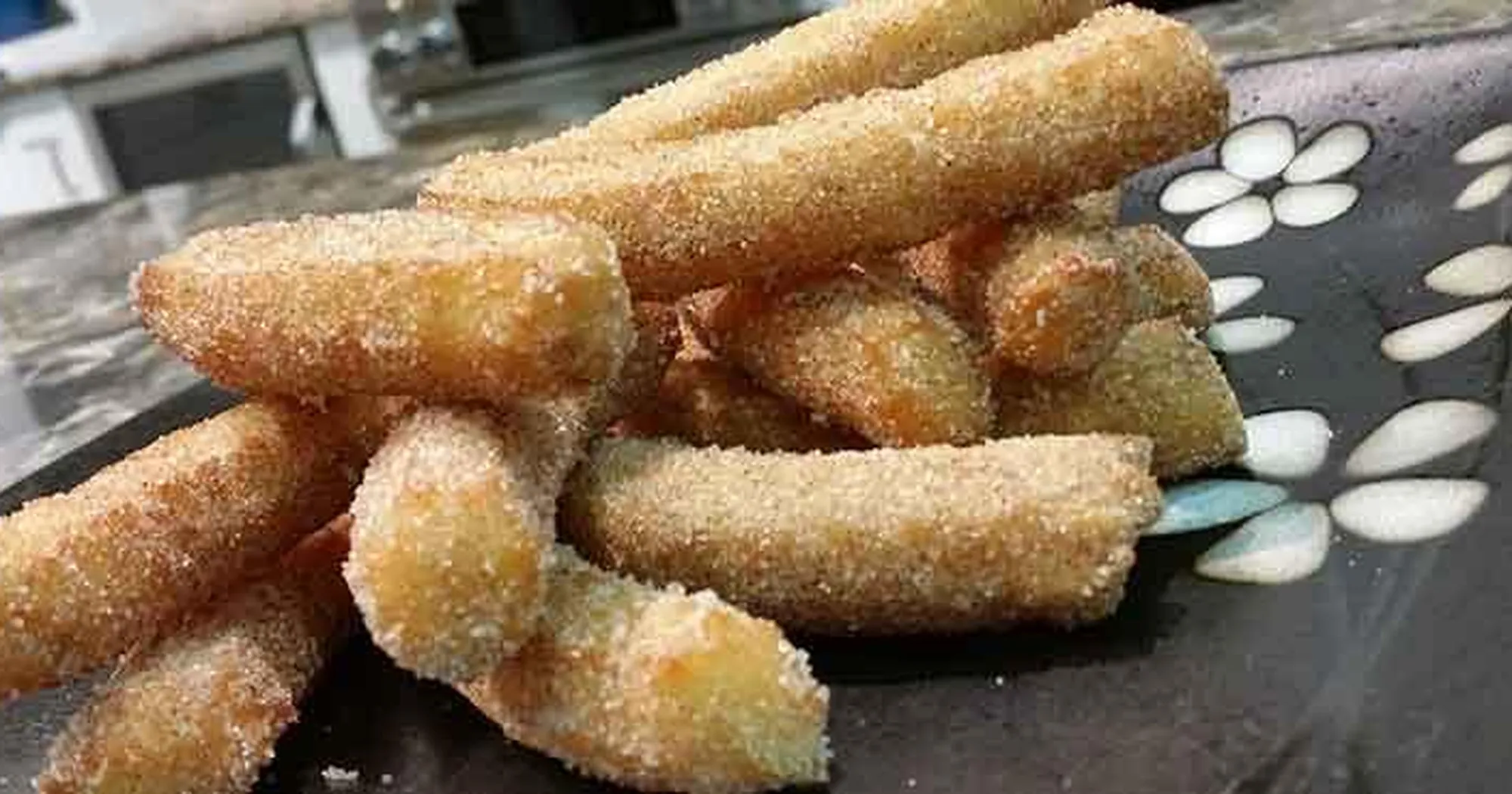 Once dried and cooled, toss in ½ cup white sugar and 2 teaspoon cinnamon mix. Tap off excess sugar, and serve.