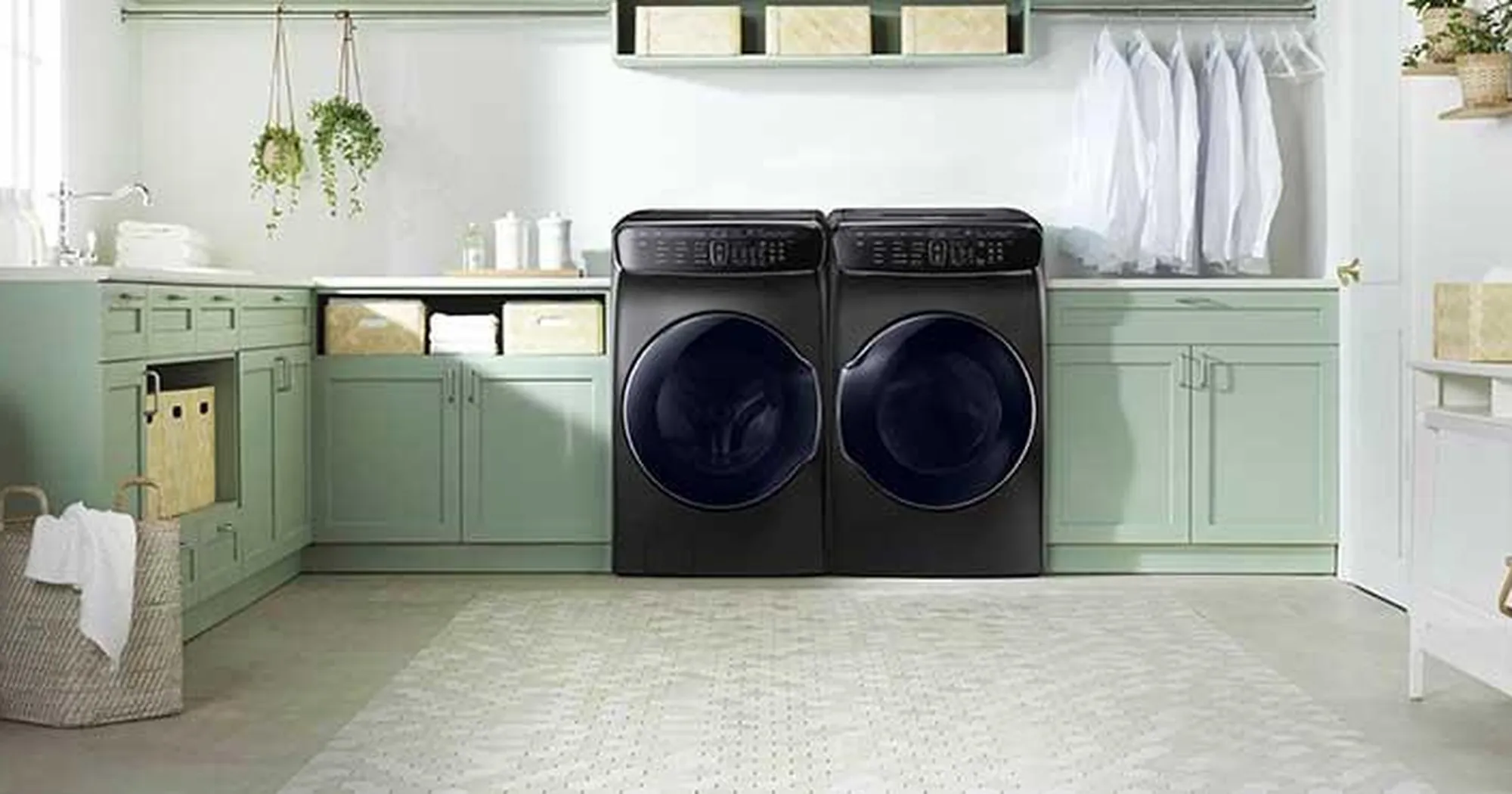 It’s important to keep in mind the actual size of the appliances. Make sure to be accurate in your measurements and keep in mind when all the pipes are connected and hooked to the back of your laundry. Some people don’t realize how far the appliances sit out, so make sure to include that in your measurements.