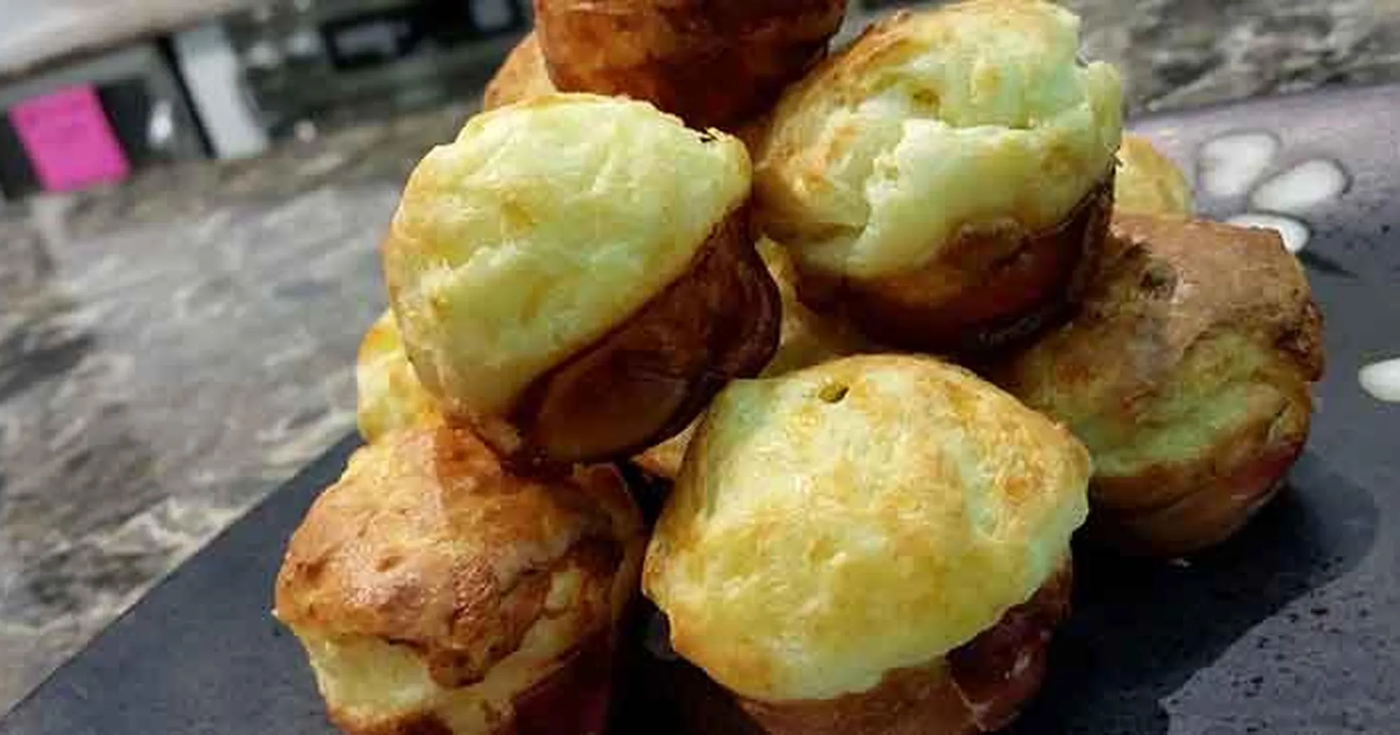 1 cup half and half creamer or coffee creamer (10-18%)¼ cup salted butter½ cup + 2 tablespoons AP flour2 teaspoons garlic powder1 teaspoon onion powder4 eggs, large1 cup Swiss cheese, grated6 strips prosciutto
