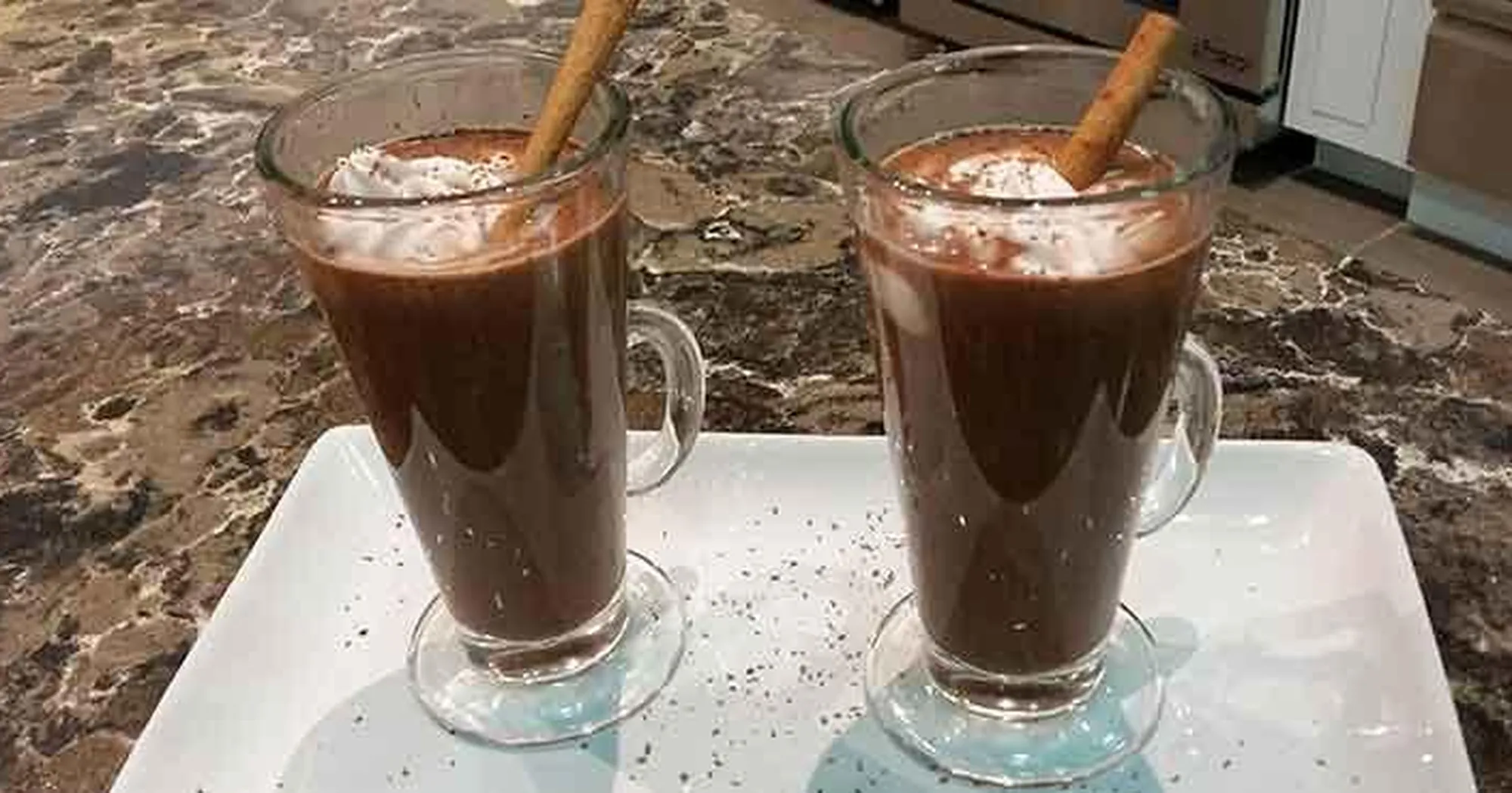 **Ingredients:**1 cup 2% milk⅓ cup white sugar2 tablespoons unsweetened cocoa1 tablespoon vanilla¼ teaspoon salt2 ounces semi-sweet bakers chocolate, chopped fine1 cup whipping cream¼ cup icing sugar2 teaspoons raspberry drink crystals