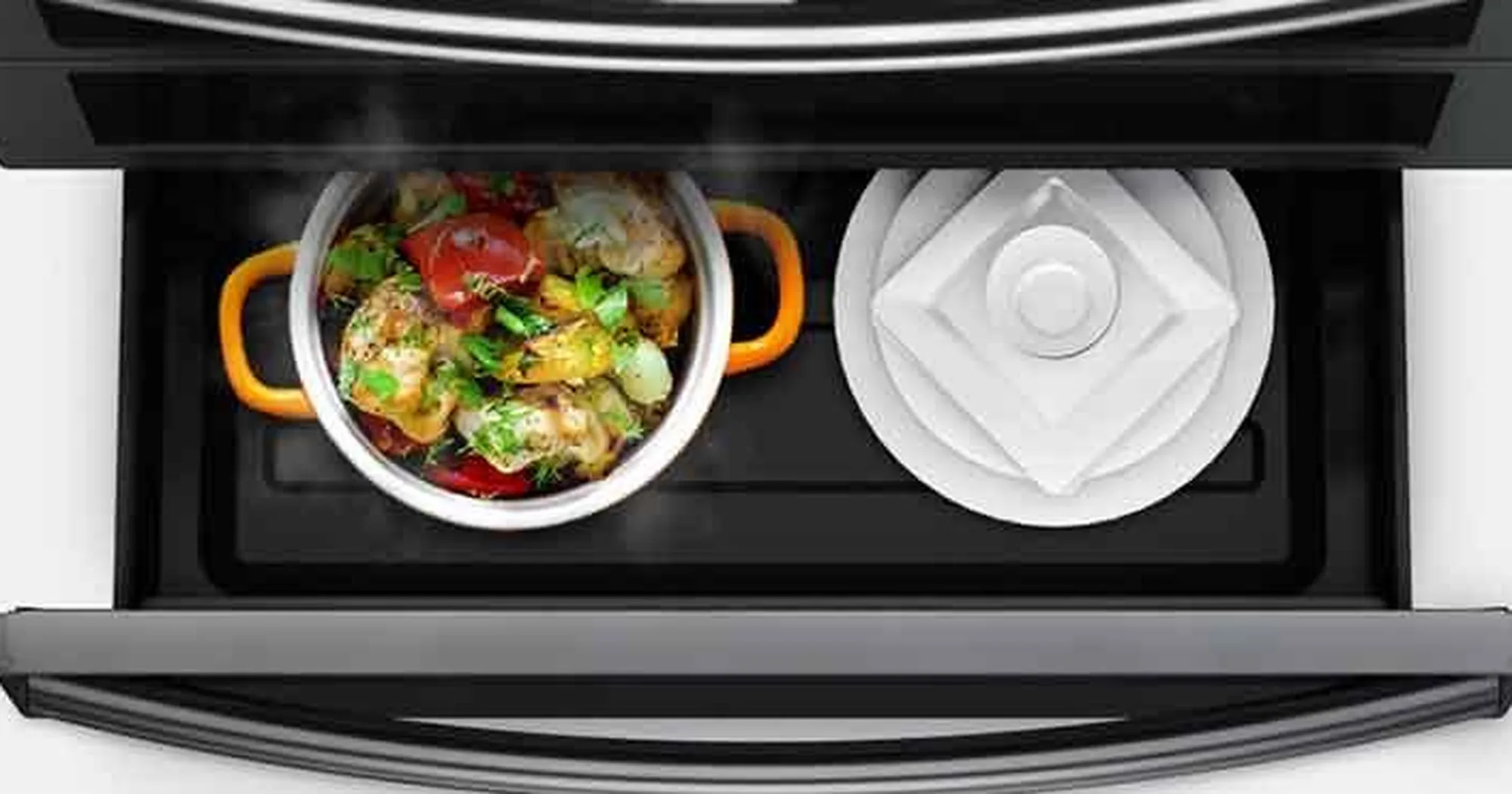 Keep in mind that warming drawers don’t warm up your food. Warming drawers help already warm food stay warm. You cannot heat up cold foods in the warming drawer.