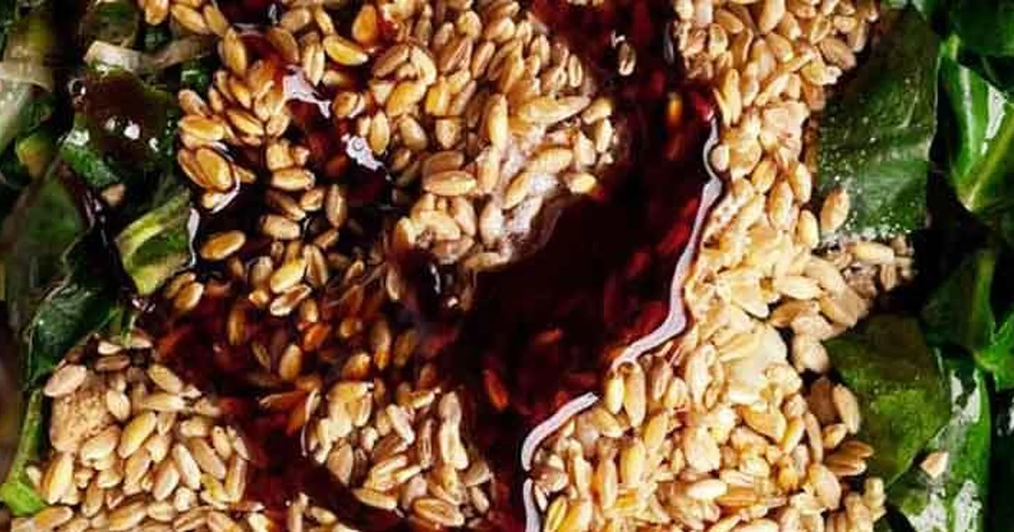 Add chicken stock and bring to a gentle simmer, low heat covered 60-70 minutes, the wheat should be al dente (firm to the bite).
